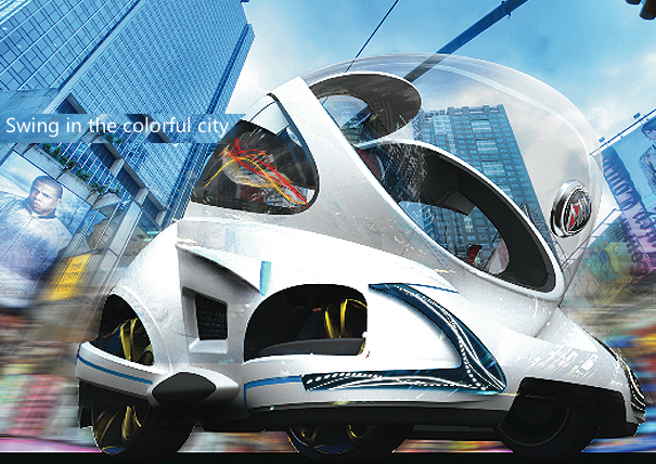 This vehicle is made to transform, though, as the potential 3-seat configuration can change to a 1-seat+storage just as fast, and the trunk is set on extend or shrink mode. Whatever size you need.The entire Swing system is set on the idea that you’re basically in a fish tank. When you push your body to the right, the vehicle moves right. Forward and you move forward. It’s the same in that if a big fish throws itself toward the side of the tank, the water inside the tank moves too, and if you’ve ever seen a cartoon fishy in your life, you know that fishbowl’s going off the counter soon!Forward, backward, turnaround, all is possible due to the no-rotation-radius wheels and gigantic window section. Getting in and out’s all in the front. Riding around is smooth. You can wear part of the car around as a backpack. What more could you possibly want out of a cutie pie vehicle like this? And it’s only the beginning!